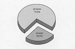 Epidemiological analysis The age of the patients ranged between 14 and 80 yr (Fig. 2). The accidents occurred most frequently to patients of active working age (20-60 yr). The mean age was 41.4 years, varying during the 5-year period from a minimum of 33.4 yr in 1992 to a maximum of 56.5 yr in 1994 (Fig. 3) The male to female ratio was 38:11 (77.6%:22.4%) (Fig. 4). In 36 cases (73.5%) the burns were suffered at home as a result of carelessness or criminal action (Fig. 5). Accidents at work constituted 13 cases (26.5%).