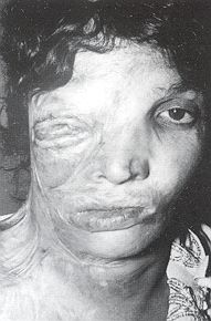 Il est à noter une évolution longue: l'ulcération évolueentre dix et vingt ans avant d'exploser en cancer (Tableau II), ce qui est classique. Cependant, chez les enfants, la période de latence peut diminuer et l'apparition de la néoplasie peut survenir après deux à trois ans d'évolution séquellaire.